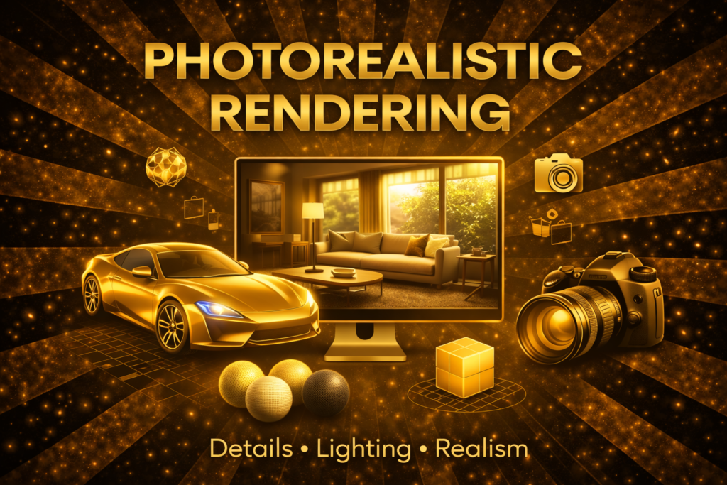 Photorealistic rendering is the process of creating images from 3D models that are so realistic they appear as photographs. This involves accurately simulating lighting, shadows, textures, and materials to produce highly detailed and lifelike visuals. It is widely used in fields like architecture, product design, movies, and video games to provide a true-to-life representation of designs and concepts, enhancing the visualization and decision-making process.