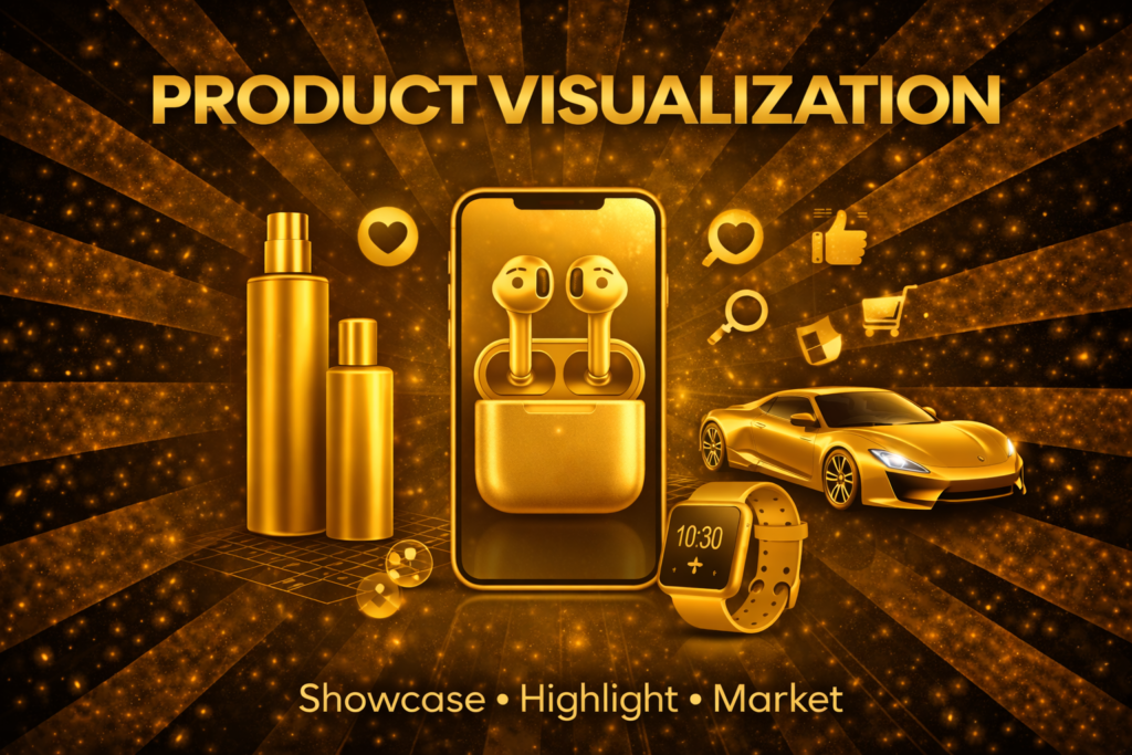 Product visualization is the process of creating detailed and realistic images or animations of a product using 3D modeling and rendering techniques. This allows designers and marketers to showcase products before they are physically produced, enabling a clear and accurate representation of the final product. Product visualization is widely used in industries such as consumer goods, automotive, and fashion, enhancing marketing materials, improving design processes, and aiding in decision-making by providing a lifelike preview of the product’s appearance and functionality.