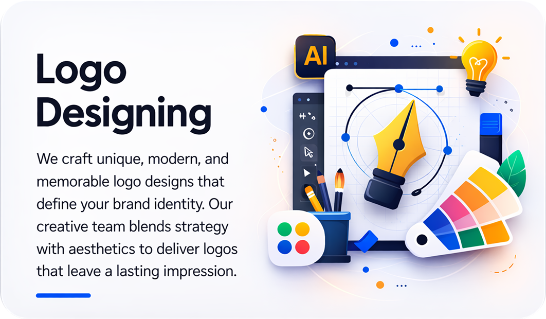 We create professional and memorable logo designs that represent your brand identity perfectly. Our logos are clean, modern, scalable, and crafted to leave a lasting impact.