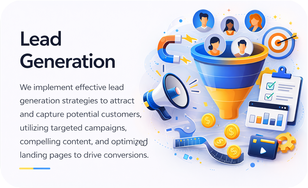Our lead generation strategies help businesses attract and convert high-quality customers using targeted marketing, optimized funnels, and performance-driven campaigns.