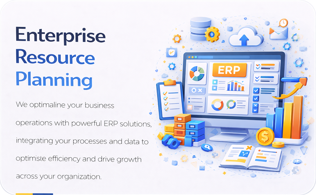 Enterprise Resource Planning (ERP) systems integrate core business functions such as finance, procurement, inventory, HR, manufacturing, and operations into a unified digital ecosystem. Our ERP solutions eliminate data silos by providing a single source of truth, enabling organizations to optimize workflows, reduce manual processes, and improve operational visibility. Designed for scalability and flexibility, our ERP platforms support growing businesses by adapting to increased data volume, users, and operational complexity while maintaining performance, security, and compliance.