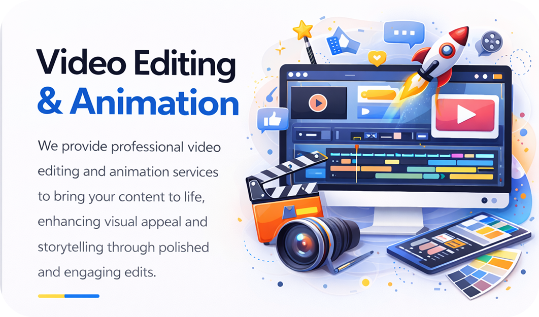 +As the world is moving towards video content, we turn around high-quality 2D/3D animations and video edits that are optimized for social and digital sharing.